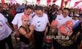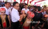 Gubernur DKI Jakarta Anies Baswedan (tengah) didampingi Walikota Jakarta Barat Anas Effendi (kiri) menyaksikan tarian tradisional dari para disabilitas saat acara memperingati Hari Disabilitas Internasional Tingkat Provonsi DKI Jakarta 2017 di Panti Sosial Bina Grahita Belaian Kasih, Jalan Peta Utara, Jakarta Barat, Rabu (6/12). (FOTO : Republika/Mahmud Muhyidin)