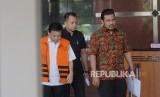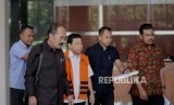 Tersangka kasus korupsi pengadaan proyek KTP Elektronik Setya Novanto berjalan menuju mobil usai melakukan pemeriksaan di Gedung KPK, Jakarta, Selasa (6/12). (FOTO : Republika/Iman Firmansyah)