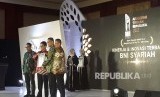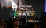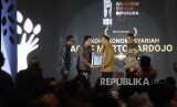 Plt Direktur Utama BNI Syariah Abdullah Firman Wibowo (ke dua kanan) menerima penghargaan Anugerah Syariah Republika 2017, Rabu (6/12). (FOTO : Republika/Fuji Pratiwi)