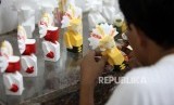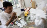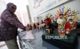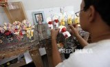 REPUBLIKA.CO.ID, JAKARTA -- Petugas menata kerajinan miniatur Ondel-ondel dengan bahan dasar kayu di Panti Sosial Bina Loka Karya, Jagakarsa, Jakarta, Kamis (7/12).