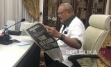 Gubernur NTB TGH Muhammad Zainul Majdi mengenakan syal Palestina saat membaca koran Republika di Pendopo Gubernur NTB, Jumat (8/12). (FOTO : dok. Humas Pemprov NTB)