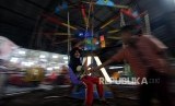 REPUBLIKA.CO.ID, DEPOK -- Warga melihat wahana permainan pasar malam di Kawasan Kelapa Dua, Kota Depok, Jawa Barat, Sabtu (2/12).
