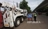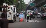 Petugas gabungan Kepolisian bersama Dishub melakukan mengamanan lalu lintas saat gelar kawasan Cipta Lancar di Jalan Kamal Raya, Cengkareng, Jakarta Barat, Senin (11/12). (FOTO : Republika/Mahmud Muhyidin)