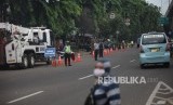 REPUBLIKA.CO.ID, JAKARTA -- Petugas gabungan Kepolisian bersama Dishub melakukan mengamanan lalu lintas saat gelar kawasan Cipta Lancar di Jalan Kamal Raya, Cengkareng, Jakarta Barat, Senin (11/12).