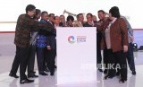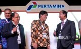 Direktur Utama Pertamina Elia Massa Manik (Tengah) di dampingi para tamu undangan melakukan pembukaan Pertamina Energy Forum 2017 di Jakarta, Selasa (12/12). (FOTO : Republika/Iman Firmansyah)