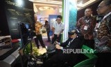 Anggota DPR RI Komisi VII Harry Poernomo mencoba simulator dalam pameran Pertamina Energy Forum di Jakarta,Selasa (12/12). (FOTO : Republika/Iman Firmansyah)