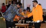 REPUBLIKA.CO.ID, JAKARTA -- Presiden Ke 3 Indonesia BJ Habibie menghadiri pembukaan Mukernas Kosgoro 1957 di Jakarta, Senin (12/12). Menteri Perindustrian Airlangga Hartanto, Ketua Umum Kosgoro 1957 Agung Laksono dan Plt Ketua Umum Golkar Idrus Marham juga tampak hadir dalam acara itu. Mukernas yang dihadiri oleh ratusan kader Kosgoro tersebut mengambil tema "Memantapkan Tri Dharma Kosgoro Untuk Mewujudkan Kesinambungan Pembangunan Nasional".