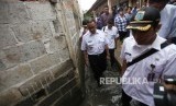 Gubernur DKI Jakarta Anies Baswedan meninjau perbaikan tanggul Kali Pulo yang jebol akibat hujan ekstrem terjadi pada Senin (11/12) siang di Kelurahan Jatipadang, Pasar Minggu, Jakarta, Rabu (13/12). (FOTO : Republika/Mahmud Muhyidin)