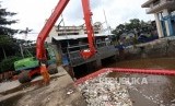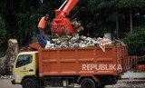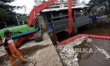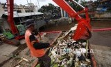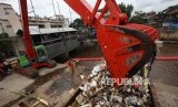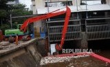 REPUBLIKA.CO.ID, JAKARTA -- Petugas menggunakan alat berat mengangkut sampah di Pintu Air Manggarai, Jakarta, Rabu (13/12).