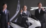 Honda PCX 150 : President Director AHM Toshiyuki Inuma (tengah) bersama Marketing Director AHM Shigeto Kimura (kiri) dan Marketing Director AHM Thomas Wijaya (kanan) berfoto bersama saat peluncuran motor Honda PCX 150 di Jakarta, Rabu (13/12). (FOTO : Republika/Edwin Dwi Putranto)