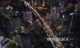 Pengendara mobil dan sepeda motor memacu kendaraannya di atas jalan layang non tol (JLNT) Kampung Melayu di antara gedung bertingkat kawasan bisnis Jl Prof Dr Satrio Jakarta Selata, Selasa (12/12) malam. (FOTO : Yogi Ardhi/Republika)