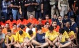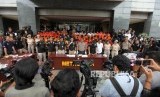 Para tersangka diperlihatkan saat rilis operasi Premanisme di Polda Metro Jaya, Jakarta, Kamis (14/12). (FOTO : Mahmud Muhyidin/Republika)