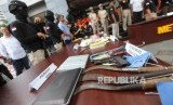Barang bukti diperlihatkan saat rilis operasi Premanisme di Polda Metro Jaya, Jakarta, Kamis (14/12). (FOTO : Republika/Mahmud Muhyidin)
