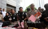 Kabid Humas Polda Metro Jaya Kombes Pol Argo Yuwono didampingi Direktur Reskrimum Polda Metro jaya Kombes Pol Nico Apitta bersama jajaranya memberikan keterangan kepada media saat rilis operasi Premanisme di Polda Metro Jaya, Jakarta, Kamis (14/12). (FOTO : Republika/Mahmud Muhyidin)