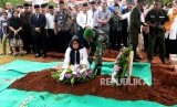 Sejumlah keluarga memberikan peenghormatan kepada jenazah senator AM Fatwa di Taman Makam Pahlawan Kalibata, Jakarta, Kamis (14/12). (FOTO : Republika/Prayogi)