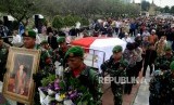 Sejumlah prajurit membawa jenazah senator AM Fatwa saat tiba di Taman Makam Pahlawan Kalibata, Jakarta, Kamis (14/12). (FOTO : Republika/Prayogi)