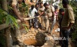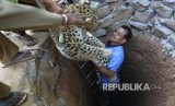 REPUBLIKA.CO.ID, GAUHATI -- Seekor macan tutul betina terjerumus ke dalam sumur kering di pinggiran Kota Gauhati, 1800km lebih dari sebelah timur ibukota New Delhi, Rabu (13/12). Petugas kehutanan dan dokter hewan dikerahkan untuk mengevakuasi kucing besar ini. Macan dibius terlebih dahulu demi keselamatan macan dan petugas. Proses evakuasi menjadi tontonan warga ini berakhir lancar. Macan betina dibawa ke fasilitas Kebun Binatang Gauhati.