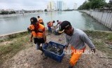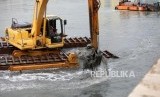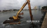 REPUBLIKA.CO.ID, JAKARTA -- Pekerja dengan menggunakan alat berat menyelesaikan proses normalisasi Danau Sunter di Jakarta, Rabu (20/12).