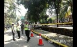 Gabungan Korlantas, Ditlantas Polda Metro Jaya, dan Polres Jakarta Selatan melakukan oleh TKP di lokasi terjadinya kecelakaan tunggal tersangka korupsi KTP-el Setya Novanto, di Jalan Permata Hijau, Kebayoran Lama, Jakarta Selatan, Jumat (17/11). (FOTO : Republika/Silvy Dian Setiawan)