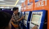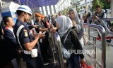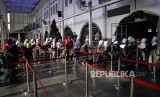 REPUBLIKA.CO.ID, JAKARTA -- Penumpang antre masuk ke dalam peron Stasiun Pasar Senen, Jakarta, Senin (25/12). Lonjakan penumpang kereta api di Stasiun Pasar Senen jelang Libur Natal 2017 dan Tahun baru 2018 melonjak sebesar 50 persen.