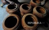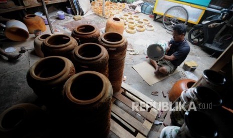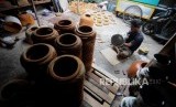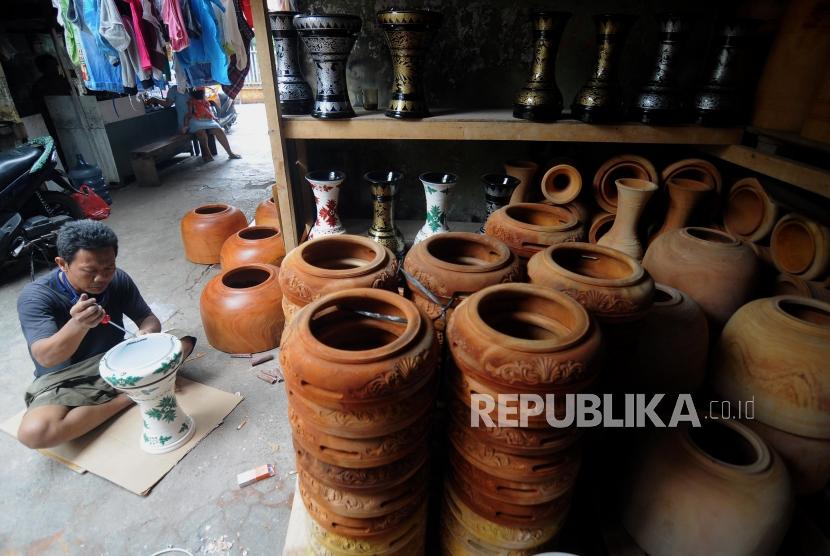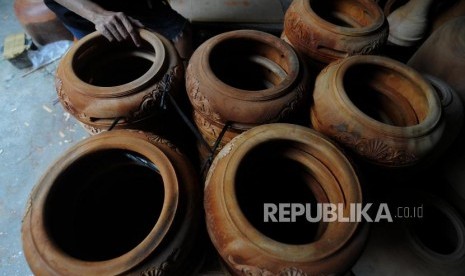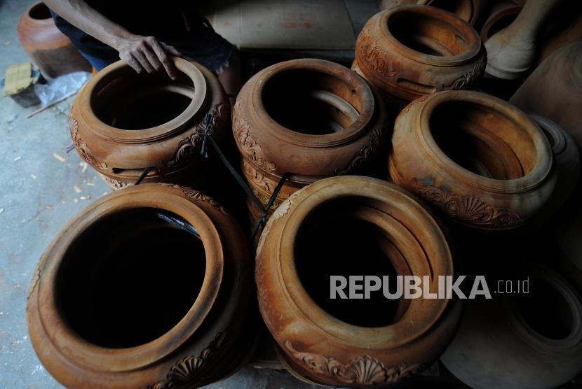 Perajin saat merapihkan tumbuk pinggang yang siap untuk dijual di kawasan condet, Jakarta Timur, Kamis (28/12). (FOTO : Republika/Putra M. Akbar)