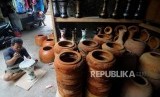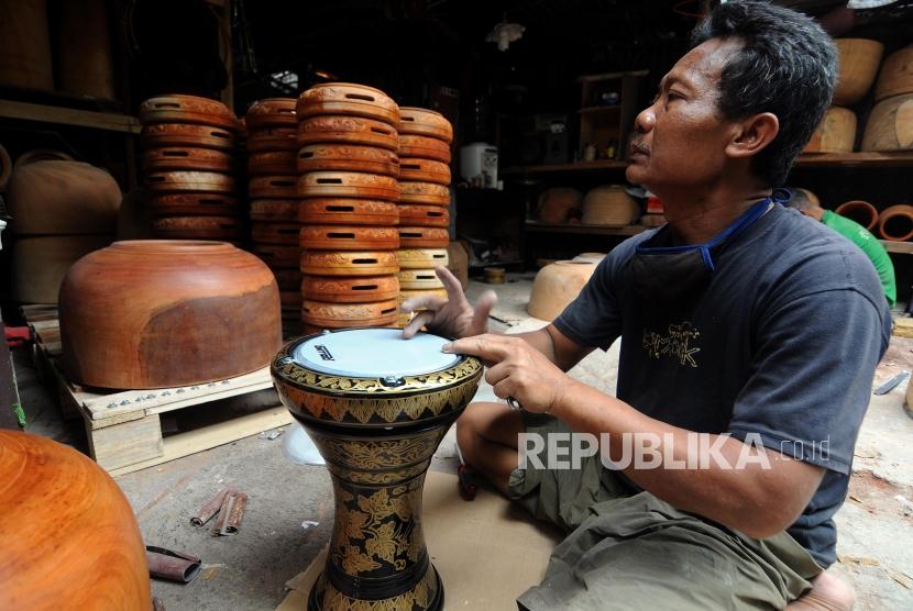 REPUBLIKA.CO.ID, JAKARTA -- Perajin saat menyelesaikan pembuatan alat musik tumbuk pinggang di kawasan condet, Jakarta Timur, Kamis (28/12).