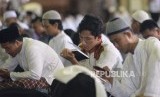 Sambil menanti Dzikir Nasional 2017 dimulai, sejunlah jamaah membaca alquran dan berzikir di Masjid At-Tin.