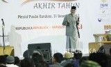 KH Asep Effendi memberikan tausyah pada acara Muhasabah Akhir Tahun yang digelar Republika Jawa Barat di Masjid Pusdai, Kota Bandung, Ahad (31/12). (FOTO : Republika/Edi Yusuf)