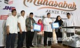Pemberian pemenang Hadiah Umrah pada acara Muhasabah Akhir Tahun yang digelar Republika Jawa Barat di Masjid Pusdai, Kota Bandung, Ahad (31/12). (FOTO : Republika/Edi Yusuf)