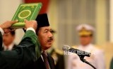 Kepala Badan Siber dan Sandi Negara Djoko Setiadi mengikuti pengambilan sumpah jabatan Kepala BSSN oleh Presiden Joko Widodo di Istana Negara, Jakarta, Rabu (3/1). (FOTO : Republika/ Wihdan)