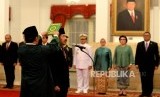 Kepala Badan Siber dan Sandi Negara Djoko Setiadi mengikuti pengambilan sumpah jabatan oleh Presiden Joko Widodo di Istana Negara, Jakarta, Rabu (3/1). (FOTO : Republika/ Wihdan)