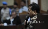 Memberikan Pernyataan. Terdakwa kasus tindak pidana korupsi KTP Elektronik Setya Novanto memberikan pernyataan saat persidangan lanjutan dengan agenda putusan sela di TIPIKOR, Jakarta, Kamis (4/1). (FOTO : Republika/Iman Firmansyah)