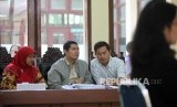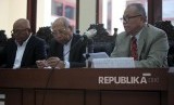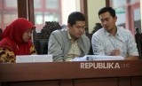 Pengacara HTI sebagai penggugat mendengarkan penyampaian duplik dari tergugat saat sidang lanjutan terkait gugatan atas Surat Keputusan Menteri Hukum dan Hak Asasi Manusia tentang pembubaran Hizbut Tahrir Indonesia (HTI) di Pengadilan Tata Usaha Negara (PTUN), Jakarta, Kamis (4/1). (FOTO : Republika/Mahmud Muhyidin)