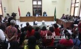 Suasana saat sidang lanjutan terkait gugatan atas Surat Keputusan Menteri Hukum dan Hak Asasi Manusia tentang pembubaran Hizbut Tahrir Indonesia (HTI) di Pengadilan Negeri Tata Usaha, Jakarta, Kamis (4/1). (FOTO : Republika/Mahmud Muhyidin)