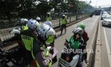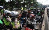 REPUBLIKA.CO.ID, JAKARTA -- Anggota kepolisian Polda Metro Jaya melakukan penindakan terhadap sejumlah kendaraan roda dua di Jalan Sultan Agung, Jakarta Selatan, Selasa (9/1).