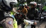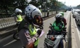Kepolisian melakukan penindakan kepada kendaraan roda dua yang melanggar peraturan dengan menggunakan jalur TransJakarta.