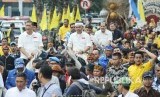 REPUBLIKA.CO.ID, BANDUNG -- Pasangan Calon Gubernur dan Wakil Gubernur Jawa Barat Deddy Mizwar (Demiz) dan Dedi Mulyadi menunggangi kuda bersama massa pendukungnya dan diiringi berbagai kesenian asal Jawa Barat menuju Kantor Komisi pemilihan Umum (KPU) Jawa Barat, Jalan Garut, Kota Bandung, Selasa (9/1).