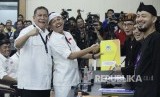 Pasangan Calon Gubernur dan Wakil Gubernur Jawa Barat Deddy Mizwar dan Dedi Mulyadi saat menyerahkan berkas pencalonan dalam Pendaftaran Pasangan Calon Gubernur dan Wakil Gubernur Jawa Barat Tahun 2018, di Kantor KPU Jawa Barat, Kota Bandung, Selasa (9/1). (FOTO : Republika/Edi Yusuf)