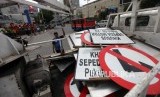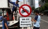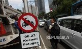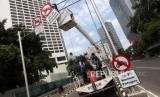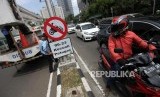 REPUBLIKA.CO.ID, JAKARTA -- Petugas Dishub DKI Jakarta mencabut rambu-rambu larangan sepeda motor di kawasan MH Thamrin, Jakarta, Rabu (10/1).
