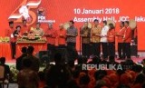 HUT PDI Perjuangan. Presiden Joko Widodo memberikan sambutan saat HUT ke-45 PDI Perjuangan di Balai Sidang Jakarta, Rabu (10/1). (FOTO : Republika/ Wihdan)