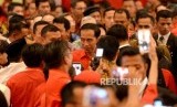 HUT PDI Perjuangan. Presiden Joko Widodo memasuki ruangan HUT ke-45 PDI Perjuangan di Balai Sidang Jakarta, Rabu (10/1). (FOTO : Republika/ Wihdan)