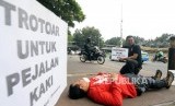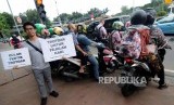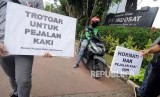 REPUBLIKA.CO.ID, JAKARTA -- Pencabutan larangan pengendara sepeda motor di Jl MH Thamrin menimbulkan ekses baru. Trotoar yang sejatinya hak pejalan kaki kembali digunakan oleh oknum pengendara sepeda motor. Mengantisipasi hal tersebut Koalisi Pejalan Kaki melakukan aksi di Jl MH Thamrin, Jumat (12/1). Aksi ini ditujukan kepada pengendara sepeda motor yang melintasi jalur pedestrian di kawasan tersebut.