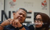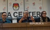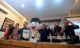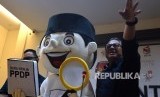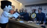 REPUBLIKA.CO.ID, JAKARTA -- Ketua KPU Arief Budiman bersama maskot gerakan pencocokan dan penelitian (coklit) seusai memberikan keterangan pelaksanaan coklit serentak di Kantor KPU Jakarta, Ahad (14/1).