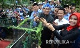 Wali Kota Bandung Ridwan Kamil dan istri Atalia Praratya melepas burung pada peremian Forest Walk Babakan Siliwangi, Kota Bandung, Rabu (17/1). (FOTO : Republika/Edi Yusuf)