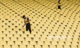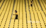 Pekerja membersihkan bangku di Stadion Si Jalak Harupat, Kabupaten Bandung, Jawa Barat, Jumat (19/1). (FOTO : Antara/M Agung Rajasa)