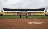 Pekerja merawat rumput di Stadion Si Jalak Harupat, Kabupaten Bandung, Jawa Barat, Jumat (19/1). (FOTO : Antara/M Agung Rajasa)