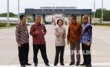Menteri BUMN Rini Soemarno (tengah) berbincang bersama Direktur Wilayah Timur PT Hutama Karya (Persero) Sugeng Rochadi (kiri), Direktur Utama PT PP (Persero) Tumiyana (kedua kiri), Direktur Utama PT Hutama Karya (Persero) I Gusti Ngurah Putra (kedua kanan), dan Direktur Utama PT Len Industri (Persero) Zakky Gamal Yasin (kanan) saat akan meresmikan Tol Pelabuhan Bakauheni-Terbanggi Besar seksi satu, di Bakauheni, Lampung, Ahad (21/1). (FOTO : Antara/Rivan Awal Lingga)