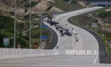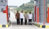 Rombongan Presiden Joko Widodo melintasi Tol Pelabuhan Bakauheni-Terbanggi Besar seksi satu seusai diresmikan, di Bakauheni, Lampung, Ahad (21/1). (FOTO : Antara/Rivan Awal Lingga)
