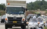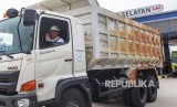 REPUBLIKA.CO.ID, BAKAUHENI -- Presiden Joko Widodo (Jokowi) menaiki truk menyusuri jalan tol Trans Sumatera ruas Bakauheni-Terbanggi Besar segmen Pelabuhan Bakauheni, Ahad (21/1). Presiden Joko Widodo menyusuri ruas tol Seksi 1 (Pelabuhan-Bakauheni) sepanjang 8,9 km.