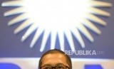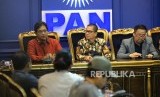 Sekretaris Fraksi PAN Yandri Susanto memberikan paparan saat konferensi pers perkembangan terkini di Kompleks Parlemen Senayan, Jakarta, Senin (22/1). (FOTO : Republika/ Wihdan)